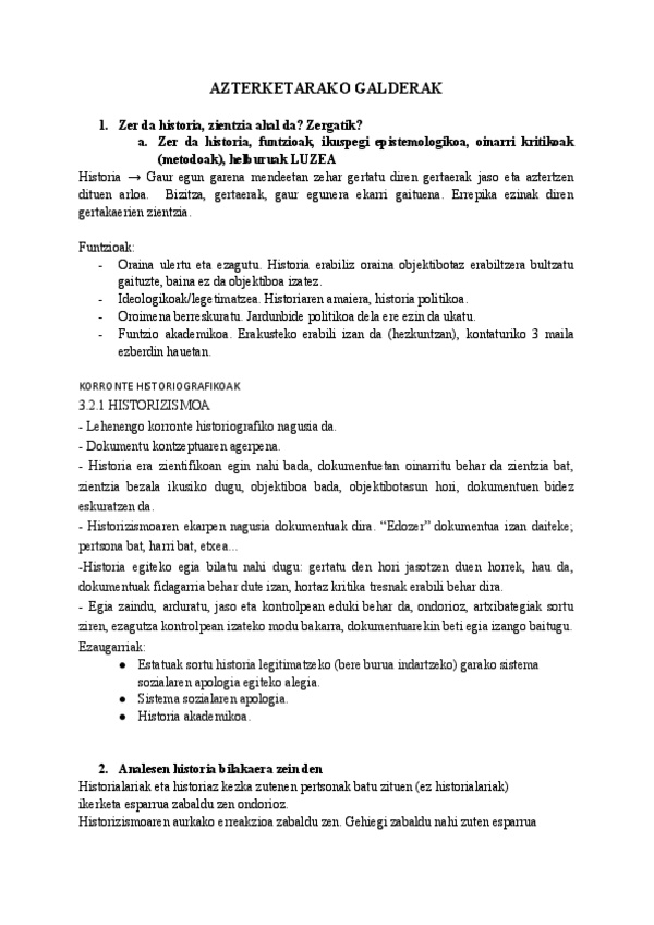 Historia ikasgairako prestaketa-materiala: galdera-errepasoa eta kontzeptu nagusiak.
