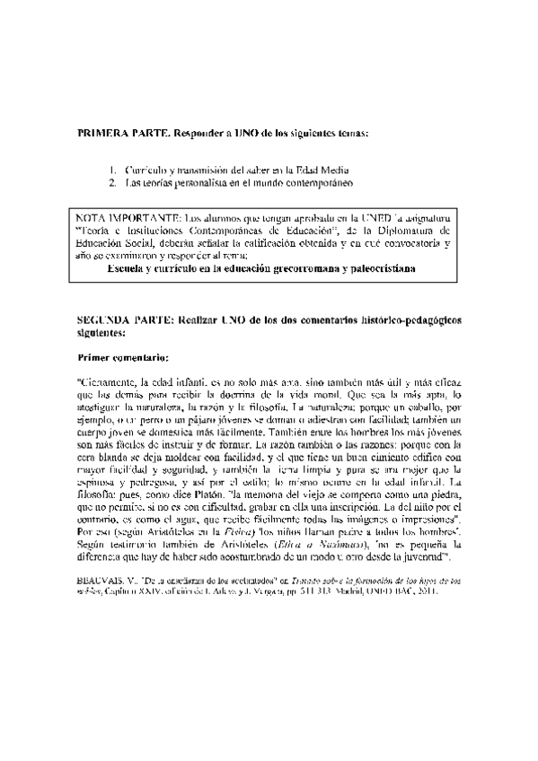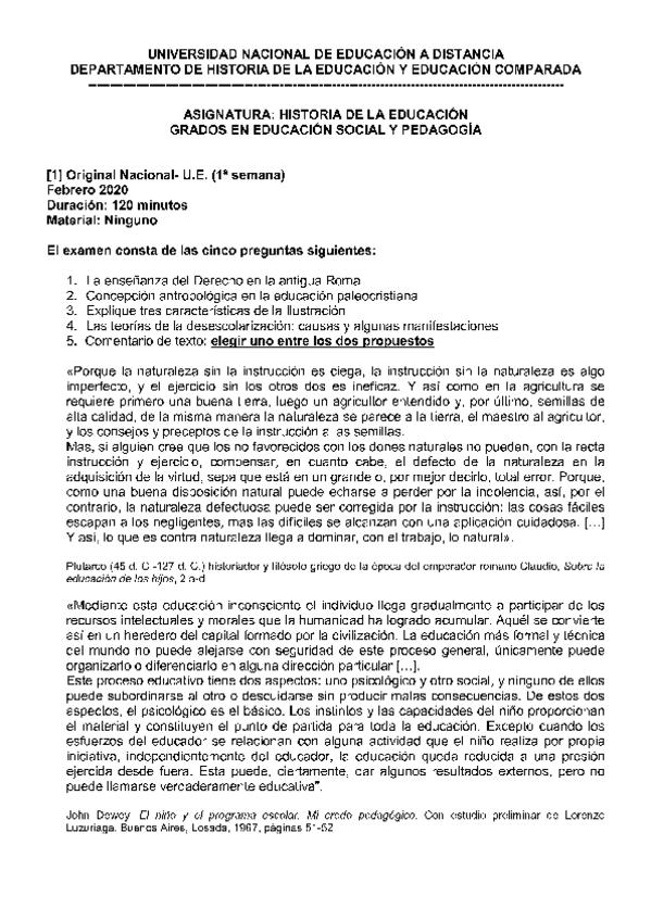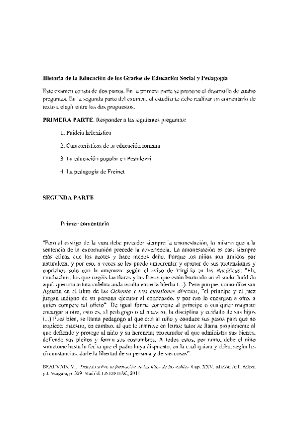 Examen historia de la educación, convocatoria Enero 2023
