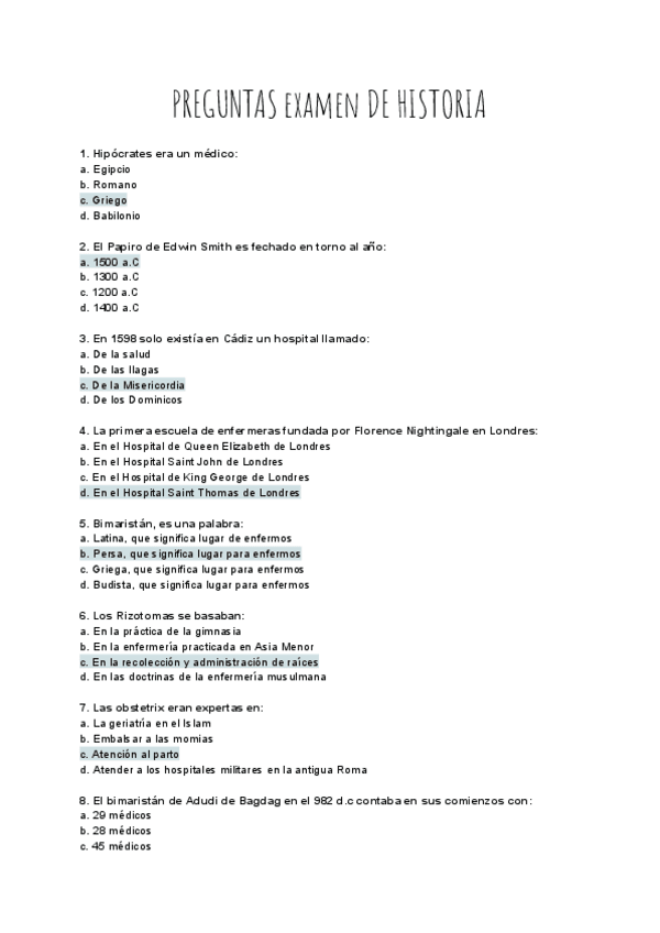 He publicado nuevos examenes de 1º Historia de la enfermería: PREGUNTAS-EXAMEN-HISTORIA.pdf