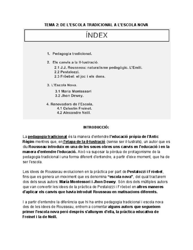 Resumen de los textos del tema 2: Froebel. La educación del hombre 2, J. J. Rousseau Emilio o La Educación. Libro primero, La educación del hombre 1826 Froebel 1. Pestalozzi. Com Gertrudis ensenya als seus fills- 1801-2.