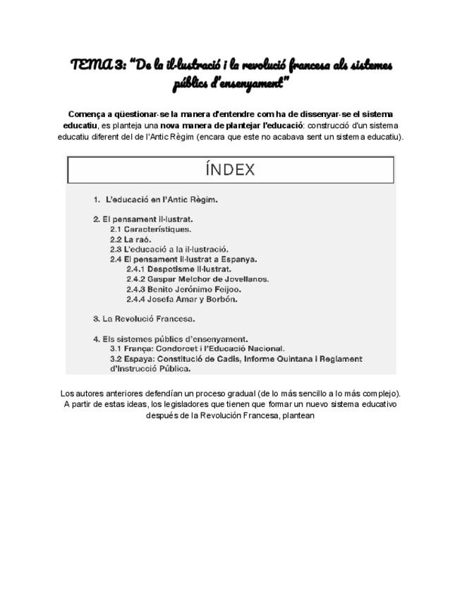 Este es el resumen del Tema 3 de Historia de la Escuela, los he hecho yo basándome en los apuntes de la profesora. Estos, me han ayudado a aprobar el examen.