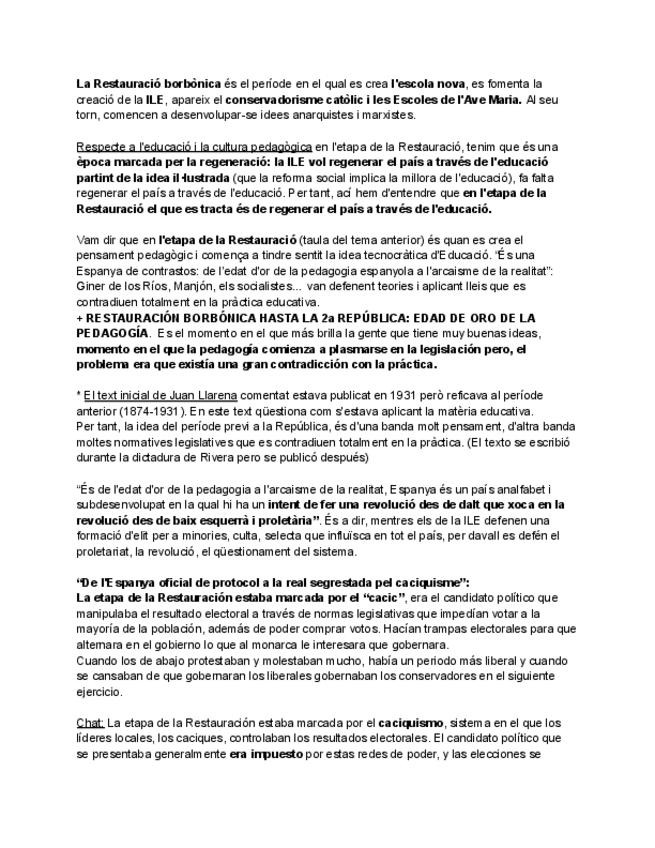 Este es el Tema 2 de Historia de la Escuela del primer semestre. Los he hecho yo misma y me han servido para aprobar. Están en este formato porque los hice en un documento pero para entenderlos mejor los hice con colores y demás. Ahora para que los tuvié