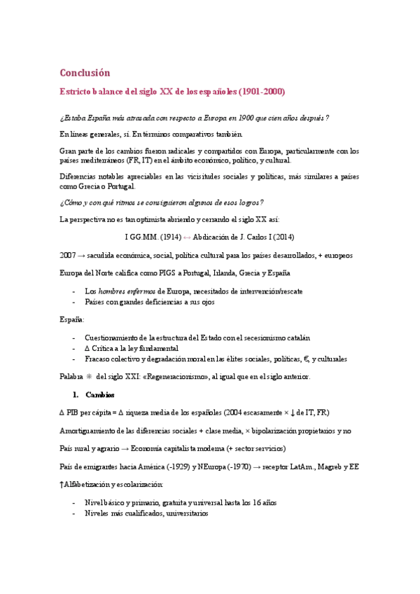 Resumen del apartado de conclusiones del libro común para todas las clases de Historia de España del siglo XX