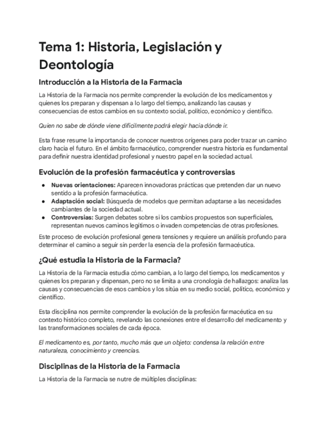 Historia de la farmacia, legislación y deontología farmacéutica I