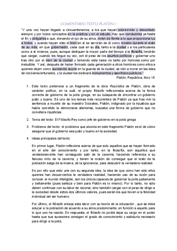 Esquema de las lineas argumentales de las que se pueden hablar de platon para un comentario