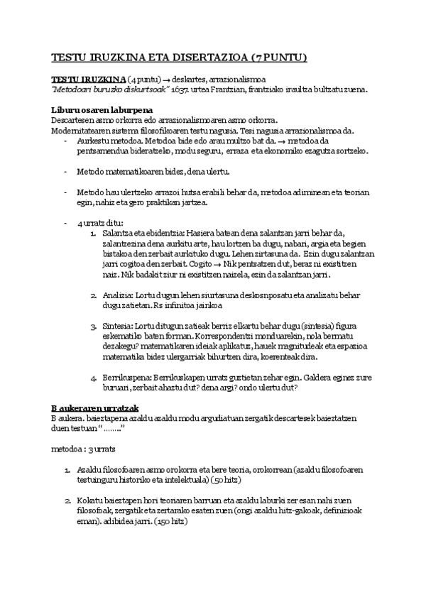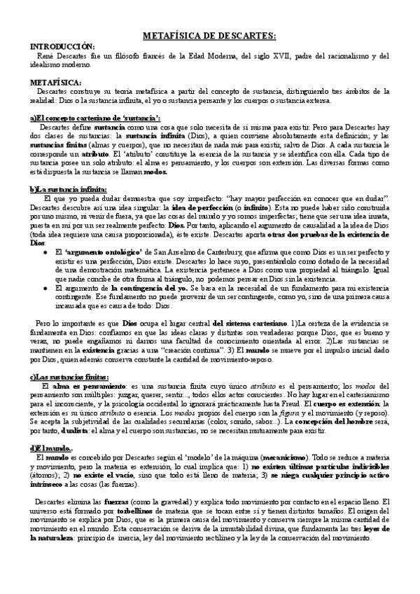 Metafísica de Descartes para el desarrollo del texto en el examen de PAU