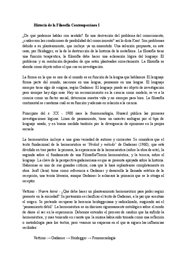Historia de la Filosofía Contemporánea I