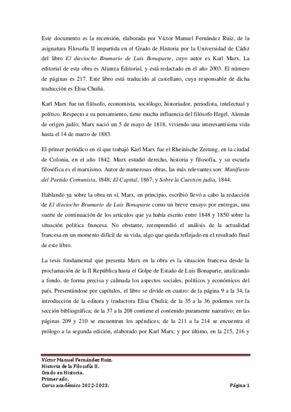 He publicado nuevos apuntes de 1º Historia de la Filosofía II: RecensionEl18BrumarioLuisBonaparte.pdf
