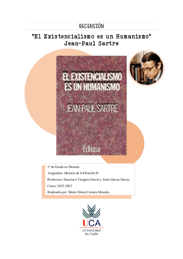 He publicado nuevos trabajos de 1º Historia de la Filosofía II: Recensión "El Existencialismo es un Humanismo", Jean-Paul Sartre.pdf