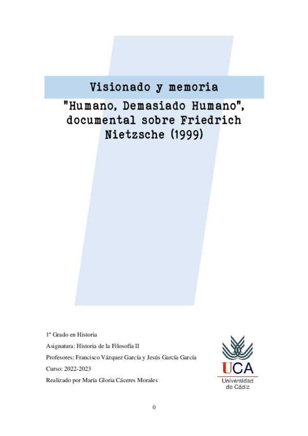 He publicado nuevos trabajos de 1º Historia de la Filosofía II: Memoria "Humano, demasiado humano". Un documental sobre Friedrich Nietzsche.pdf