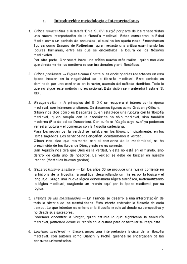Apuntes completos Historia de la Filosofía Medieval con el profesor Jorge Javier Cano