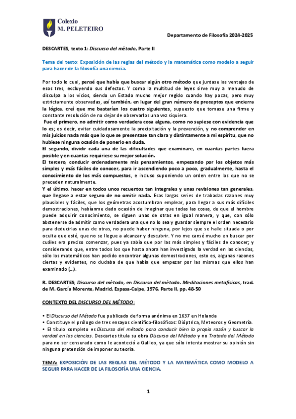 Colegio Manuel Peleteiro. Textos Descartes Comentados PAU