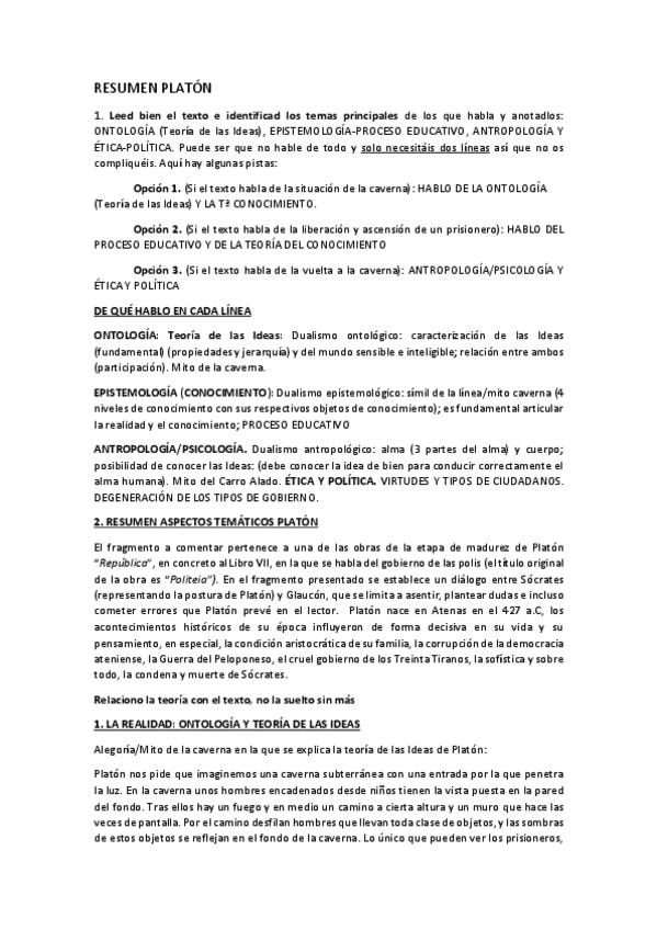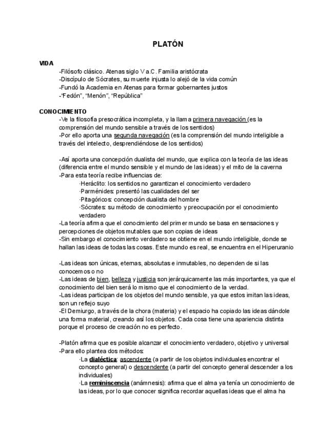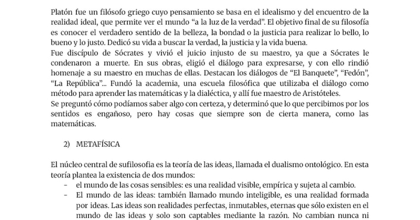 Conceptos Platón. Historia de la Filosofía 2 bachillerato