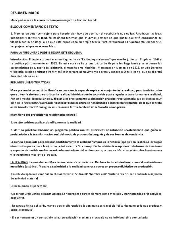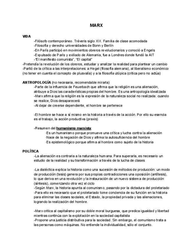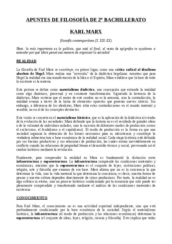 Apuntes de 2º de bachillerato, del filósofo contemporáneo KARL MARX. Está desarrollado: realidad/conocimiento, metafísica, antropología y Sociedad/Política. Es lo que necesitas para llevar a este autor a la PAU