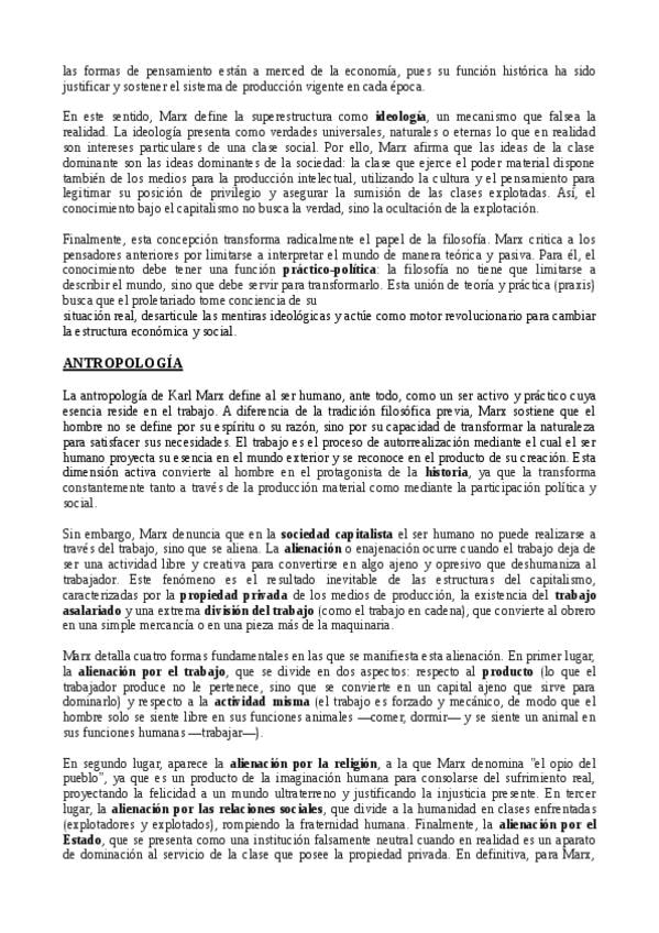 Conceptos Marx. Historia de la Filosofía 2 bachillerato