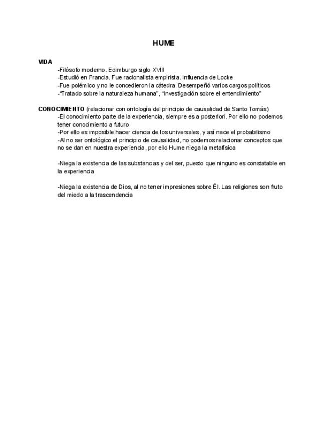 Conceptos Hume. Historia de la Filosofía 2 bachillerato
