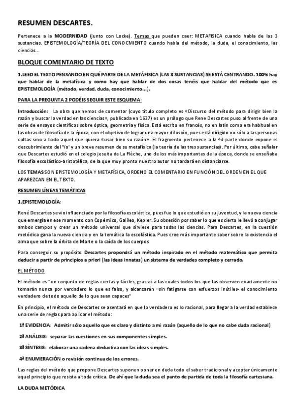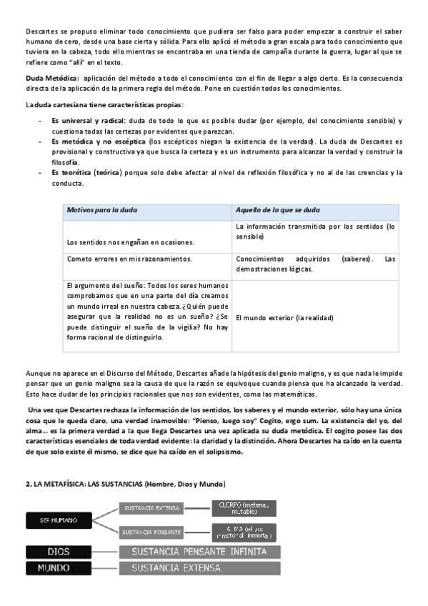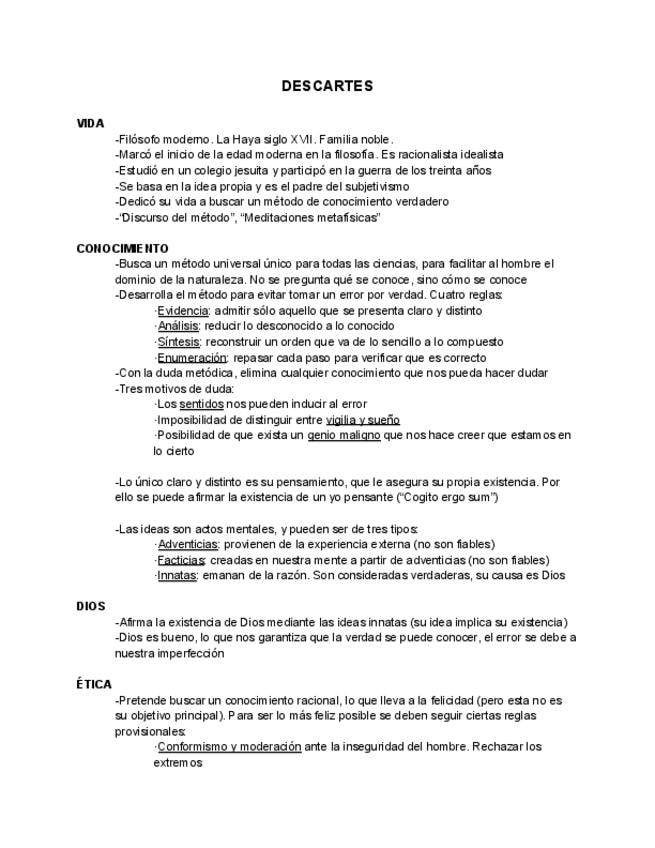 Conceptos Descartes. Historia de la Filosofía 2 bachillerato