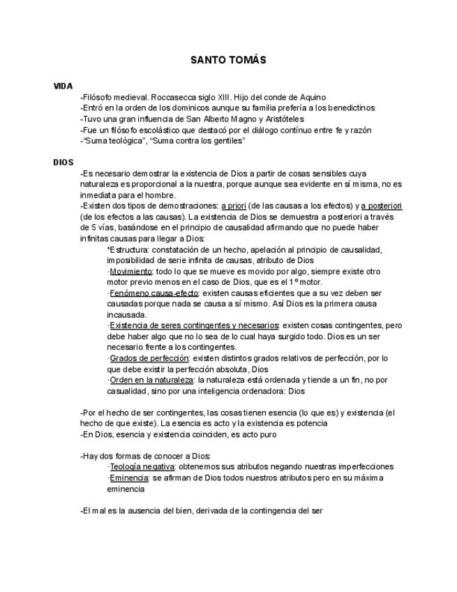 Resumen del tema 3: San Tomás de Aquino. Historia de la filosofía.