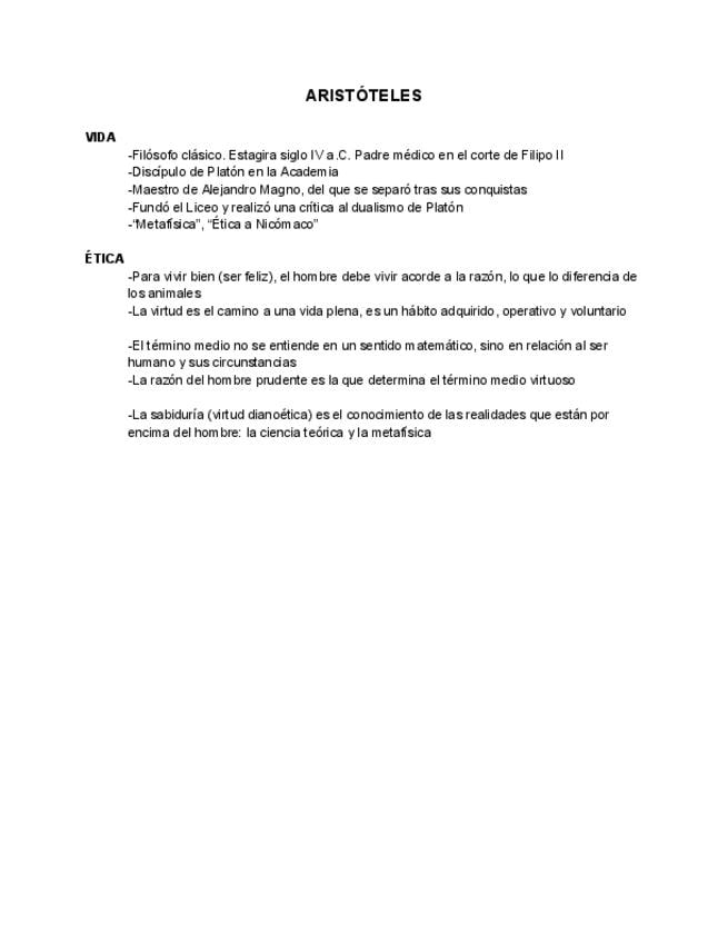 Conceptos Aristóteles. Historia de la Filosofía 2 bachillerato