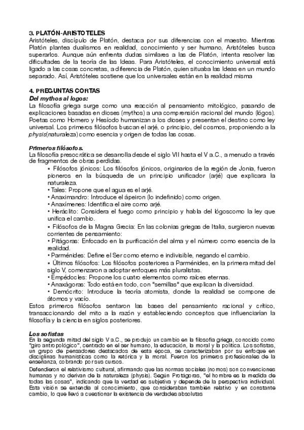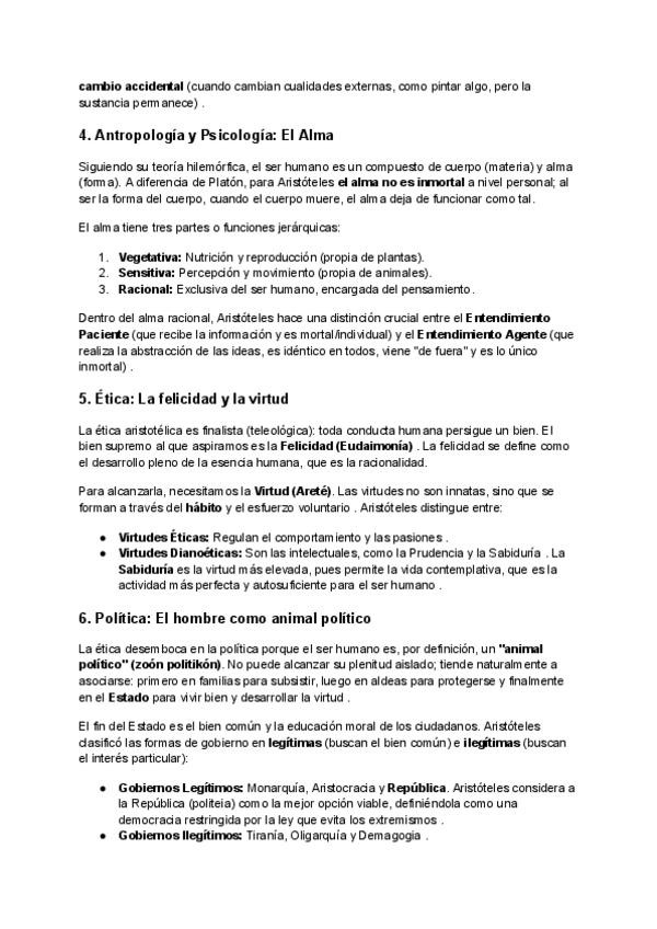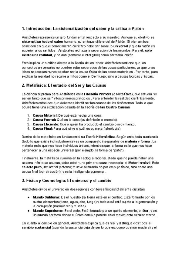 Aquí os dejo lo esecial de Aristóteles, lo que debe de aparecer sí o sí en vuestro examen.