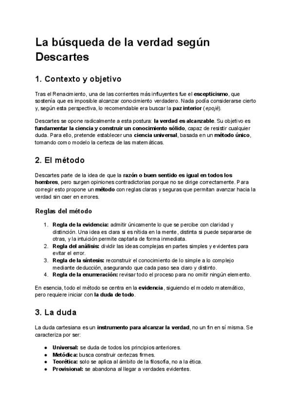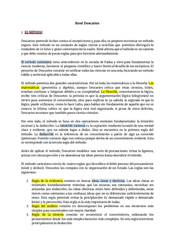 Teoria de Descartes para el apartado dos perfecta para la PAU, corregida por profesora de fiosofia.
