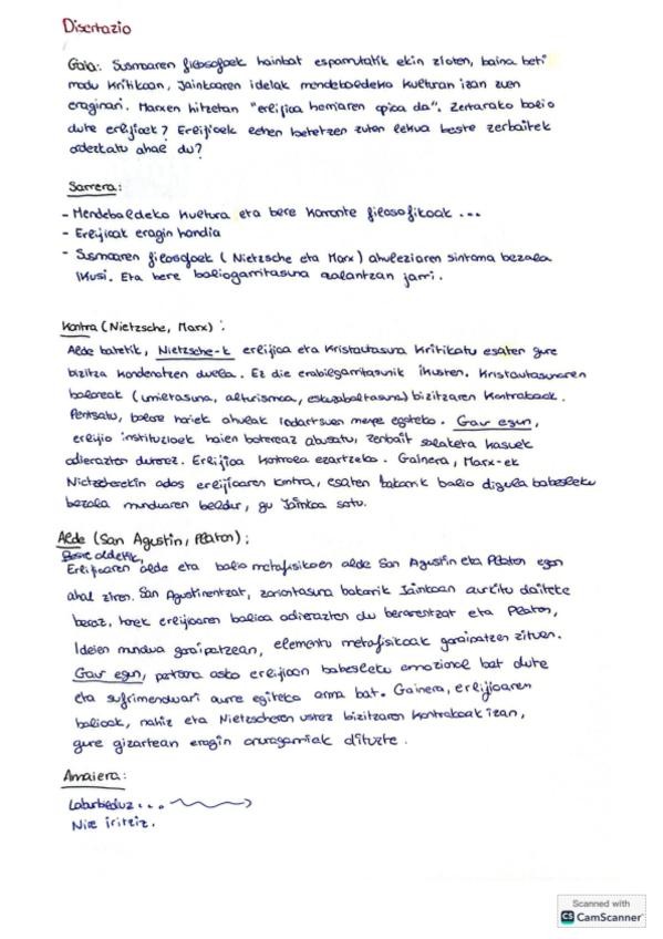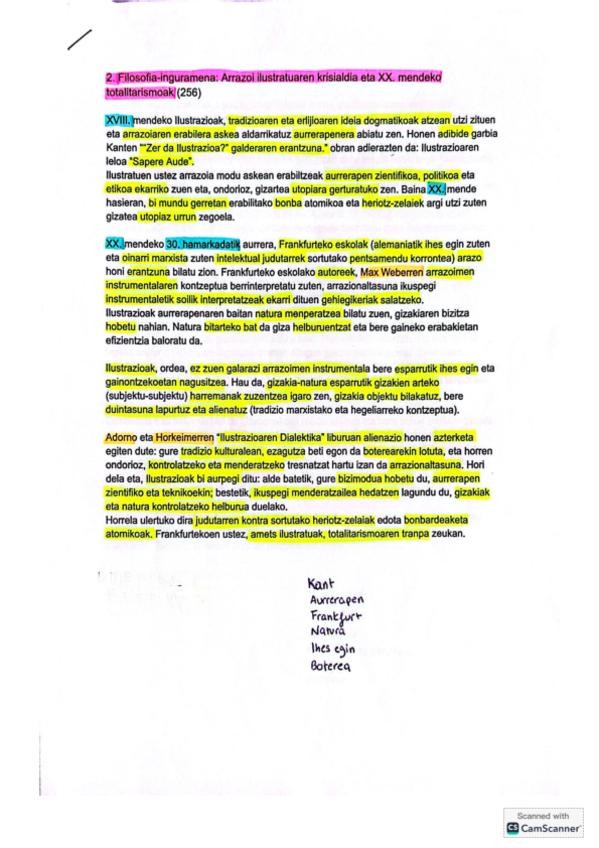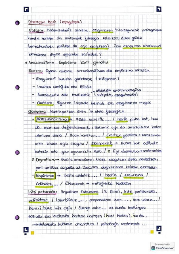 Kant atala prestatzeko apunte osoak eta bi disertazio eskemak.