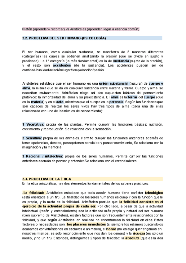 ARISTÓTELES Hª FILOSOFÍA 2° BACH EBAU