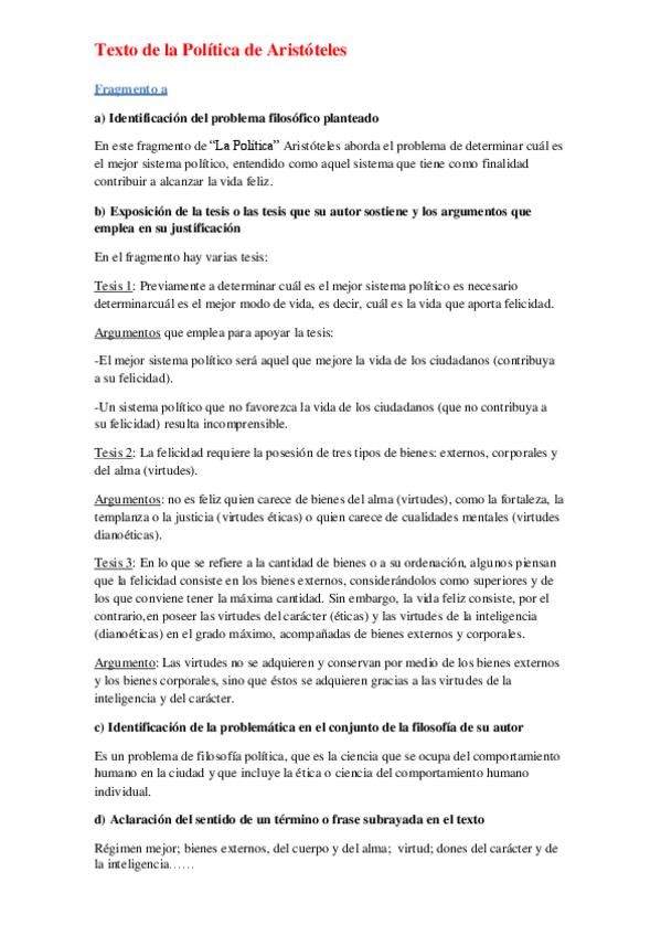 Apuntes de Aristóteles para el ejercicio 3 de Historia de la Filosofía en la prueba de acceso a la universidad. Saqué un 10 (MH) en la asignatura y un 9,75 en PAU.