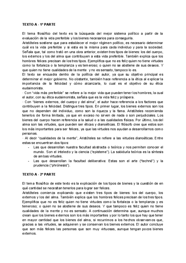 Texto de PAU 2025 de Aristóteles con análisis, y otras cosas útiles