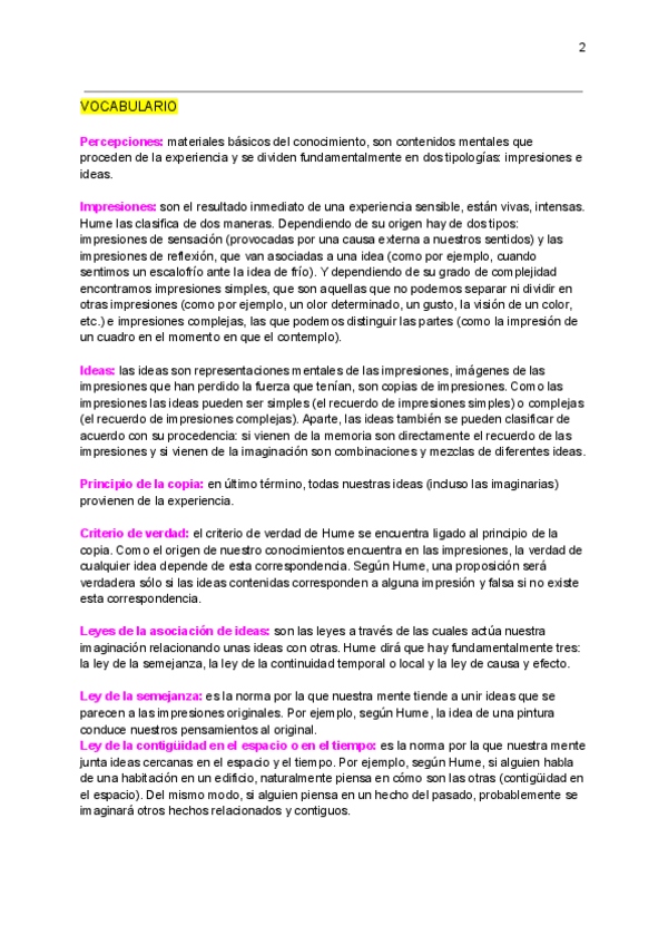 Vocabulario del autor Hume de Historia de la Filosofia. Fundamental entender estos conceptos para entender su teoría.