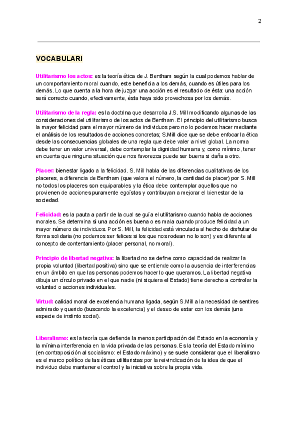 Apuntes del vocabulario del autor Mill. Fundamental entender estos conceptos para entender su teoría.