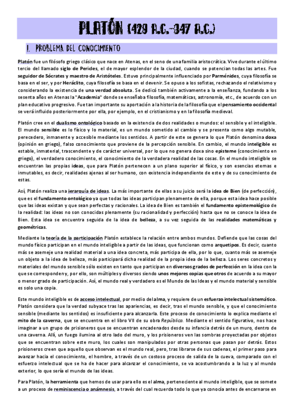 APUNTES HISTORIA DE LA FILOSOFÍA PLATÓN