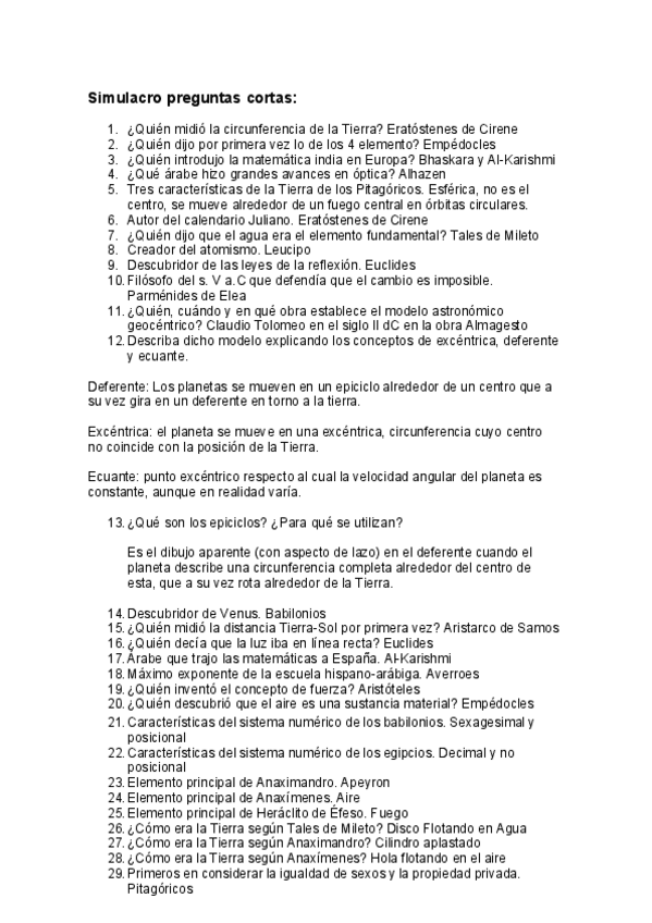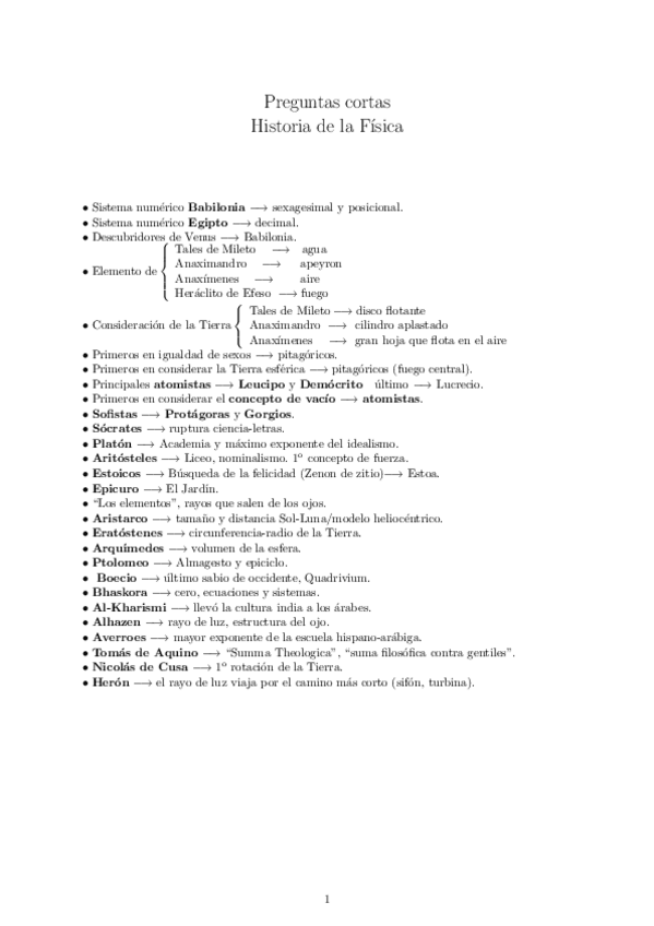 Preguntas Cortas - Historia de la Física