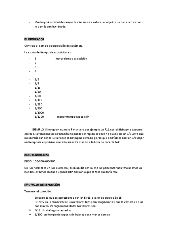 ISO, OBTURACIÓN, DIAFRAGMA CÁLCULOS Y EXPLICACIÓN