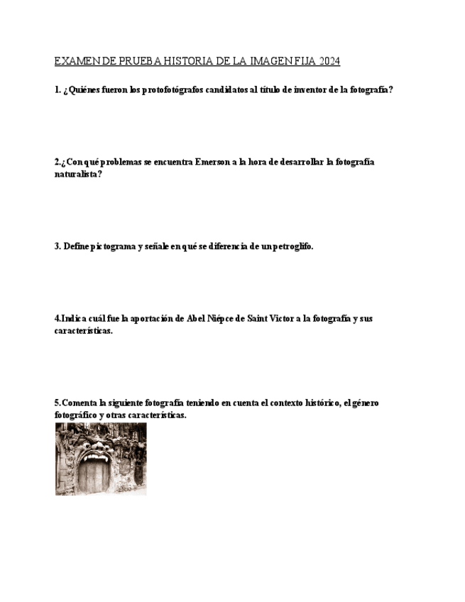 Examen de la asignatura Historia de la Imagen Fija, primera convocatoria ordinaria enero 2023.