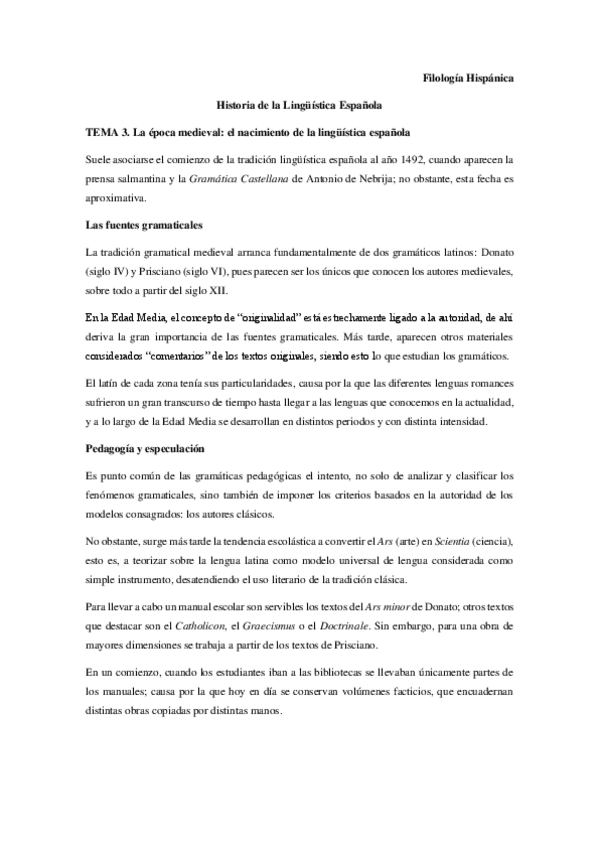 Apuntes Historia de la Lingüística Española