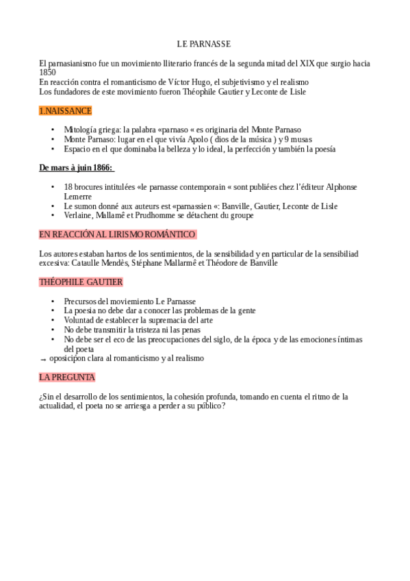 He publicado nuevos apuntes de 1º Historia de la Literatura Francesa 1: le-parnasse.pdf