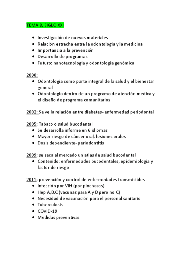 He publicado nuevos apuntes de 1º Historia de la odontología: TEMA-8.-Odontologia-S-XXI.pdf