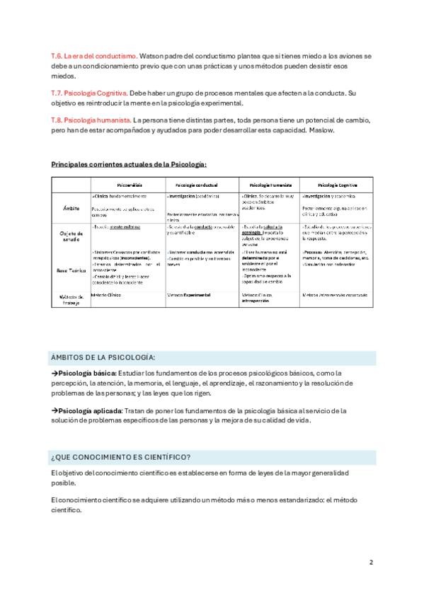 Resumenes de una cara super resumidos con los datos más relevantes de cada psicólogo y de las corrientes.
