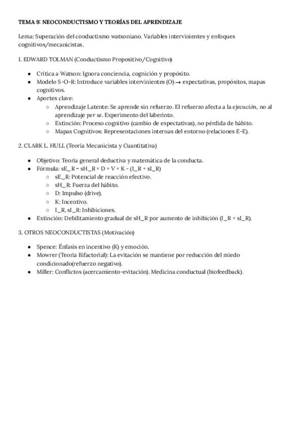El Neoconductismo de Tolman, Hull, Spence, Mowrer y Miller