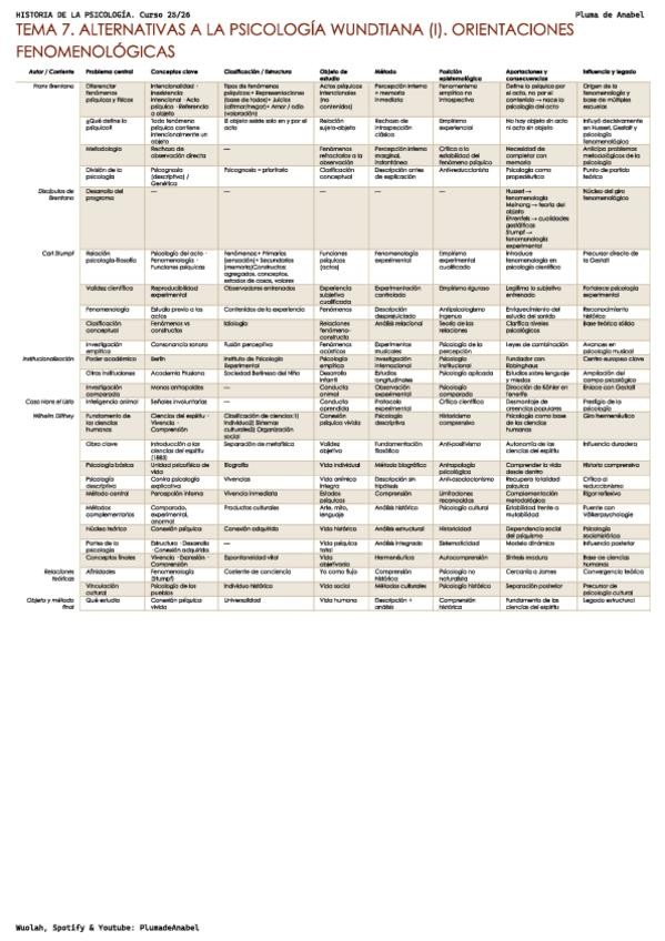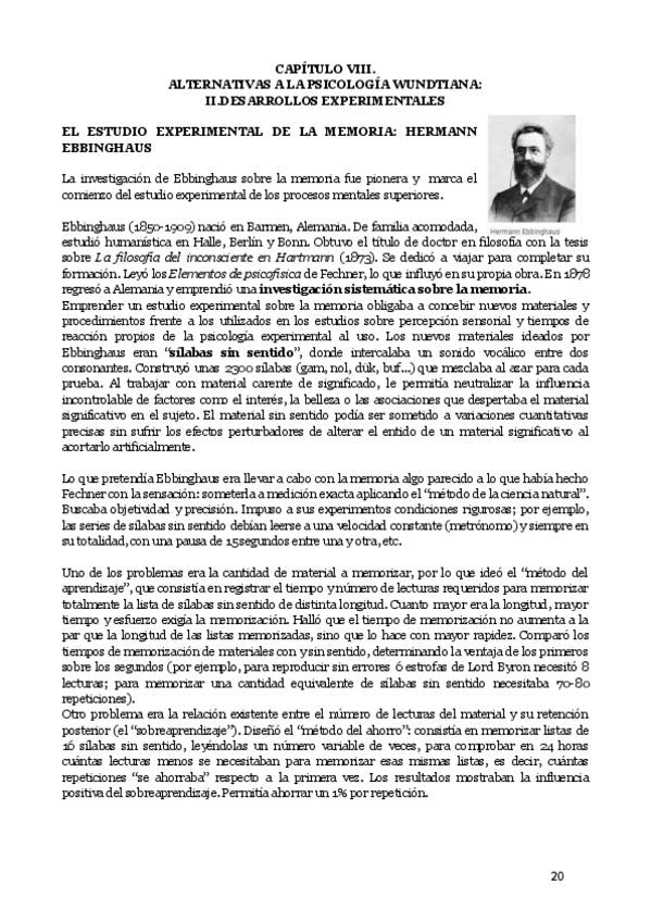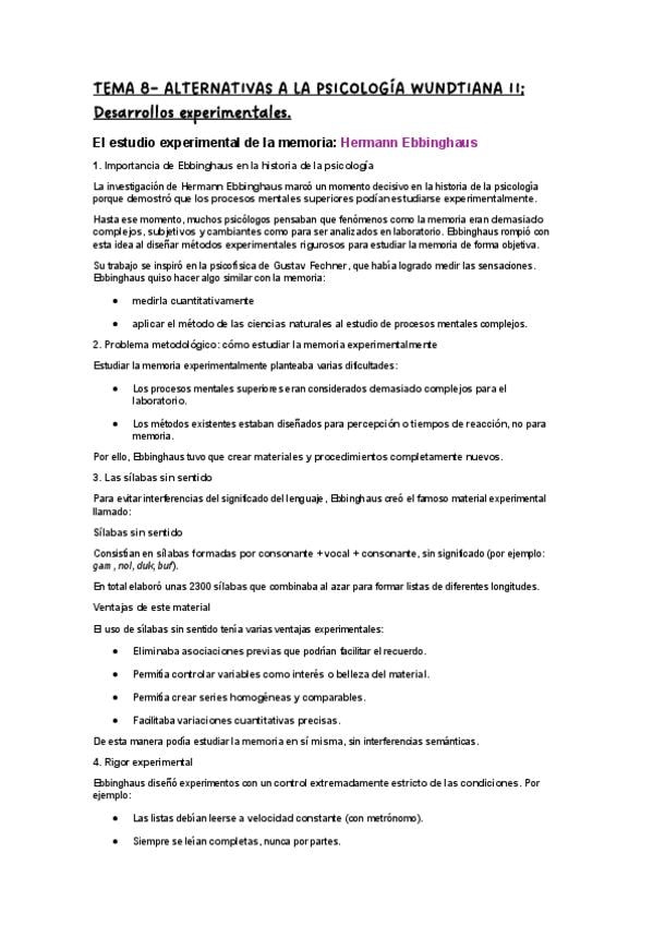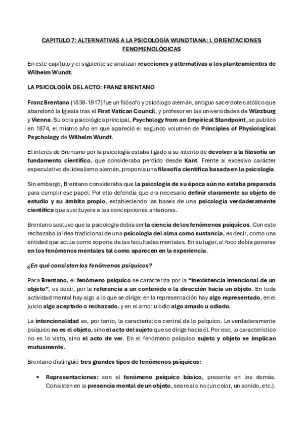 Resumen de los temas 7 y 8 de Historia de la psicologia CAPITULO 7: ALTERNATIVAS A LA PSICOLOGÍA WUNDTIANA: I. ORIENTACIONES FENOMENOLÓGICAS CAPITULO 8: ALTERNATIVAS A LA PSICOLOGÍA WUNDTIANA: II. DESARROLLOS EXPERIMENTALES