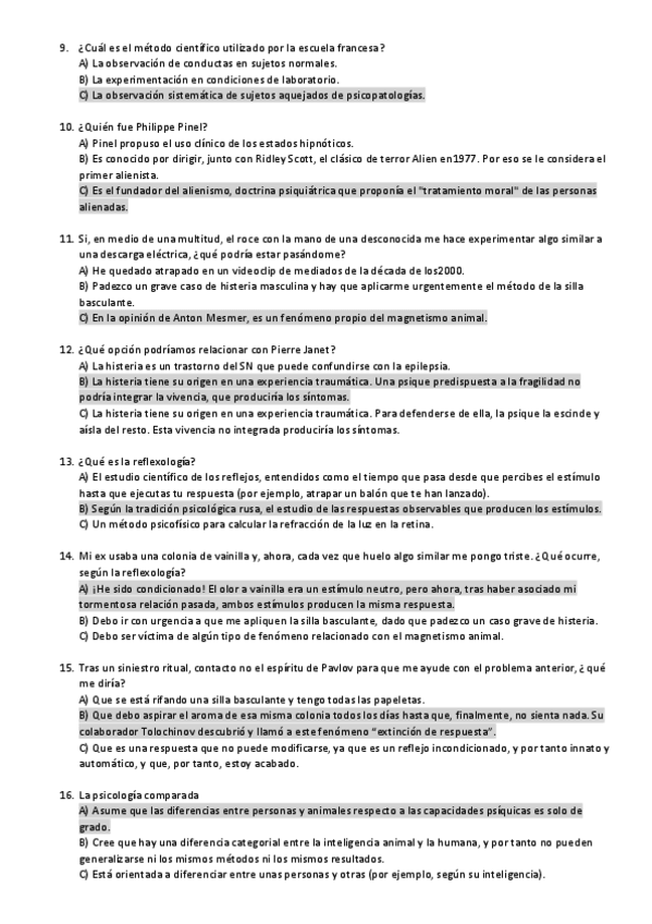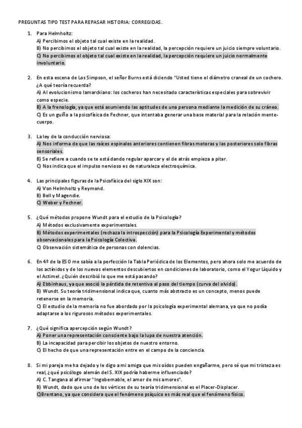 Soluciones del tipo test de repaso de la parte de historia.