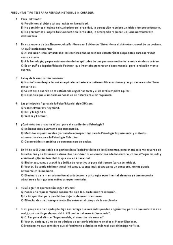 Recopilación de las preguntas tipo test que Miguel nos hacía en clase. Son de la parte de historia, no se parecieron mucho a las del examen. Las soluciones están en otro documento a parte.