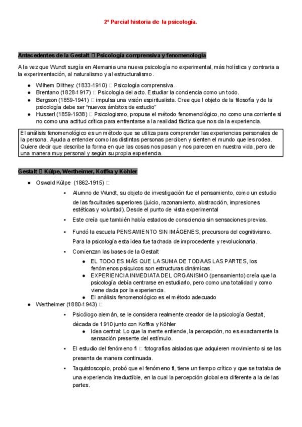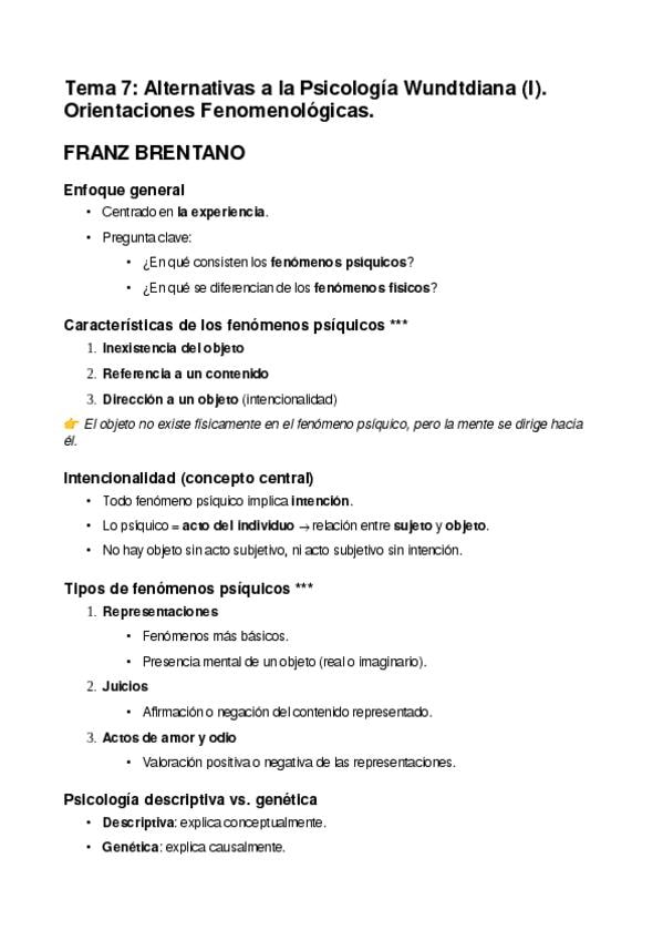 Resumen de los temas 7 y 8 de Historia de la psicologia CAPITULO 7: ALTERNATIVAS A LA PSICOLOGÍA WUNDTIANA: I. ORIENTACIONES FENOMENOLÓGICAS CAPITULO 8: ALTERNATIVAS A LA PSICOLOGÍA WUNDTIANA: II. DESARROLLOS EXPERIMENTALES