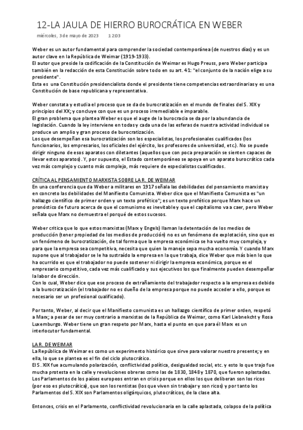 He publicado nuevos apuntes de 1º Historia de la Teoría Política: 12-LA-JAULA-DE-HIERRO-BUROCRATICA-EN-WEBER.pdf