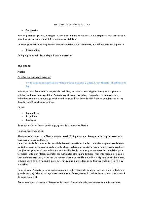 He publicado nuevos apuntes de 1º Historia de la Teoría Política: Ideas-texto-Platon-seminarios.pdf