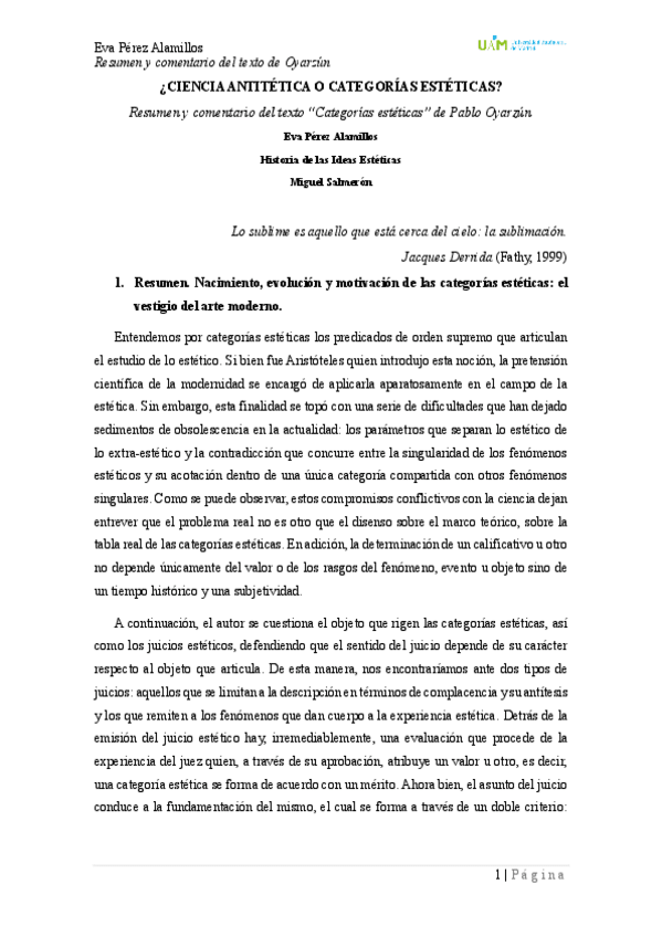Trabajo voluntario del texto de Oyarzún sobre las categorías estéticas