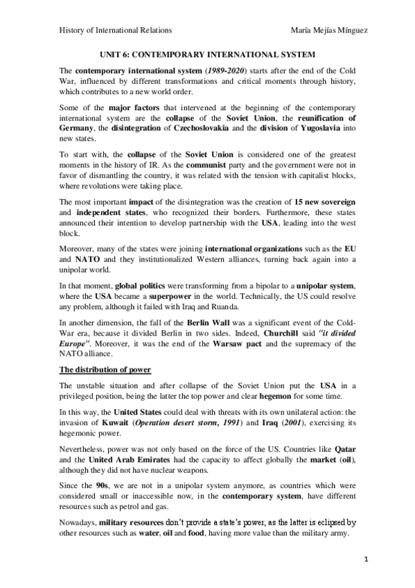 He publicado nuevos apuntes de 1º Historia de las Relaciones Internacionales: UNIT-6.pdf