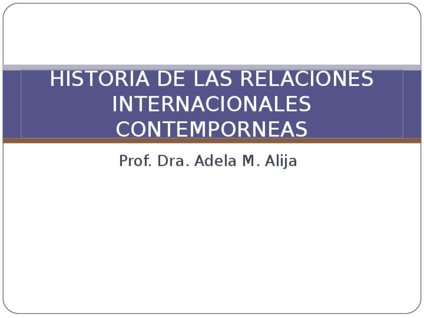 HISTORIA DE LAS RELACIONES INTERNACIONALES CONTEMPORÁNEAS