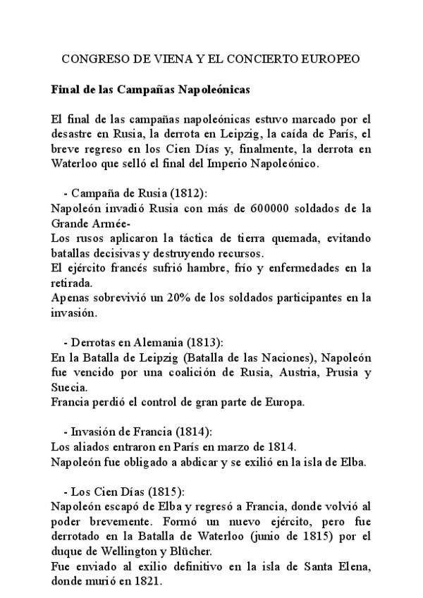 Tema 3 Historia de las RRII EL Congreso de Viena y el Concierto Europeo